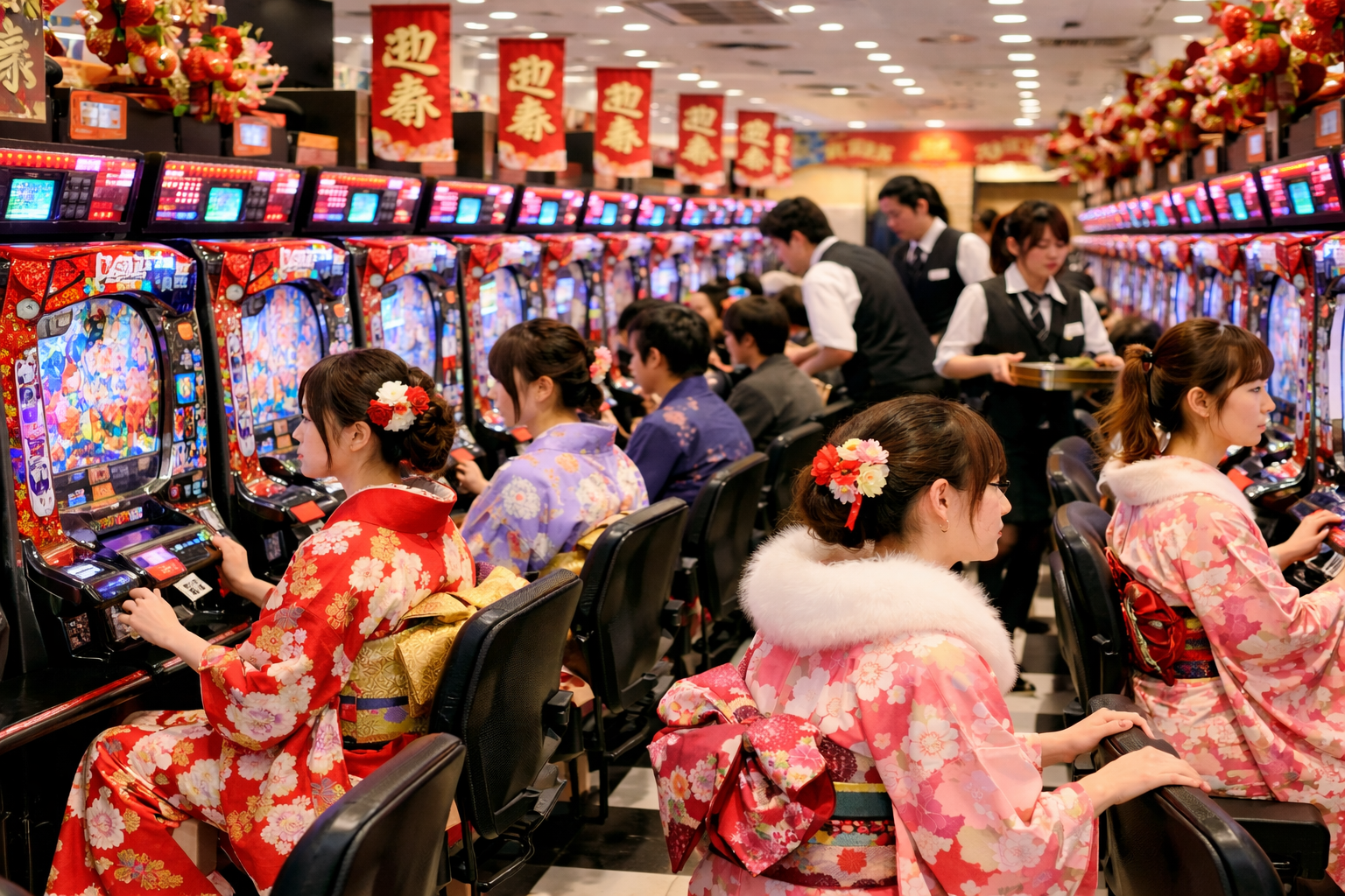もし、大当たりが確定した音や光の変化で結果がわかったとしても、席を立ったり、わざわざ確認しに行ったりするのはNGです。自分の席に座ったまま、視界の端で結果だけを確認する程度に留めましょう。